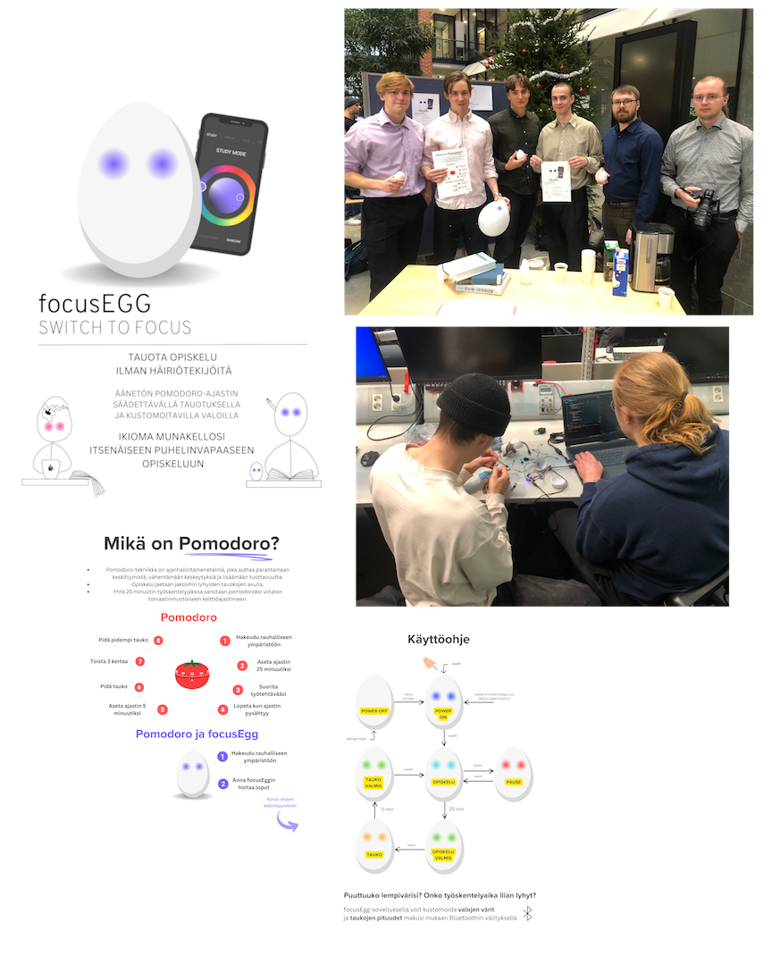focusEGG is a product we worked with for a User-centered Product Development Project course for Aalto University. It is a modern pomodoro timer, which aims to aid students experiencing difficulties with focus and short attention span.